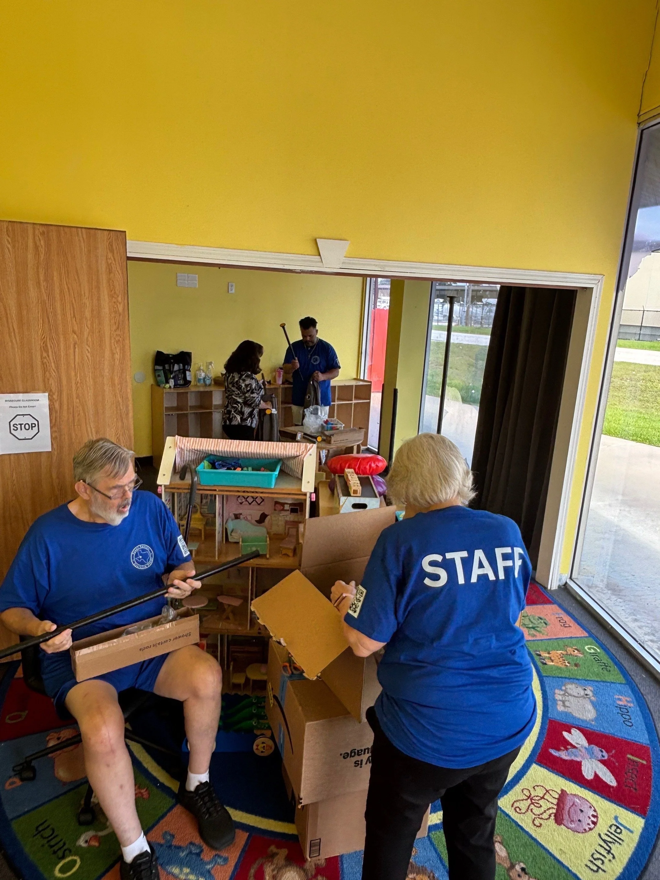 It was a family affair this weekend hanging solar shades in each of our classroom windows. Little by little everything is coming together!