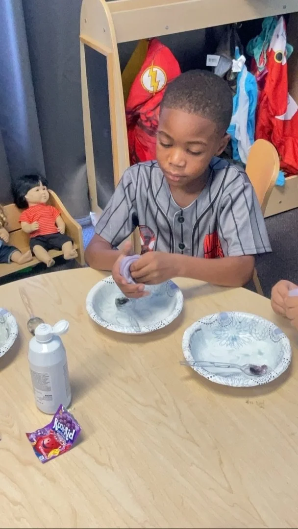 We have been busy here at Summer Camp. We have been working our mind and body. We have also incorporated some really fun art projects and science experiments. It has been raining a lot in July so our outside time isn’t as often as we would like. We make up for it by having extra time in the gym.